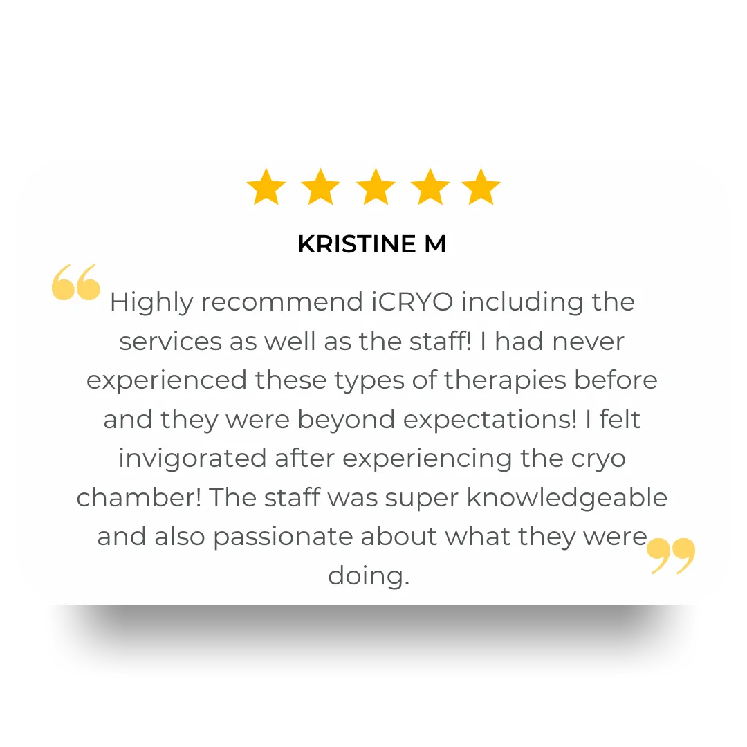 A 3-minute session exposing your body to extreme cold to achieve a 30-degree drop in skin temperature, stimulating the vagus nerve to reduce inflammation, enhance recovery, and improve mental well-being. This rapid cooling activates your body's natural healing mechanisms for rejuvenation and vitality.